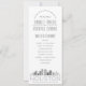 Um programa de casamento com temas de skyline deco para um casamento acontecendo na bela cidade de Houston, Texas. Este cartão do programa de casamento apresenta uma ilustração estilizada do horizonte único da cidade com seu nome embaixo. Isto está descansando debaixo da informação do dia do casamento em um estilo aberto. No verso está uma cor de cinza de níquel macio com mais detalhes de casamento em texto branco para felicitar a frente. Uma na moda de maneira a dar boas-vindas a pessoas que saem da cidade, ao mesmo tempo que lhes dá informações úteis sobre a sua série de eventos de cerimônia de casamento.