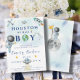 Adorável convite de chá de bebê com astronauta, foguetes, Terra e estrelas sobre fundo azul escuro. Sacudir o nosso convite para ver uma estrela cadente de volta. Visite nosso compro para toda a nossa linha, incluindo fralda correspondente e cartões de livro.