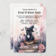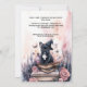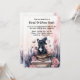 Este convite para festas de Halloween foi feito para amantes de cães e apresenta uma ilustração encantadora de aquarela. A peça central do convite é um filhote adorável, renderizado em tons de aquarela suave, vestindo um pequeno chapéu de bruxa que adiciona um toque lúdico e mágico. O filhote está sentado em uma pilha de livros antigos, encadernados em couro, com os livros pintados em delicadas tonalidades de marrom e ouro, acrescentando à cena um encanto. Ao redor do filhote estão elegantes rosas cor-de-água rosa e outros elementos florais encantadores, que dão ao convite uma sensação suave e romântica. Além disso, símbolos e objetos místicos espalham-se à volta do filhote, incluindo uma garrafa de poção de vidro translúcida, pintada com suaves lavagens de cor. Há também estrelas sutis e luas em crescente, reforçando ainda mais a atmosfera mágica da design. O fundo é uma lavagem leve e pastel, que complementa os delicados elementos aquosos enquanto mantém uma estética macia e convidativa. Este pano de fundo suave permite que as ilustrações de aquarela se sobressaiam lindamente. No topo da frente, a legenda diz: "Você é Convidado para uma Bash Howl-O-Ween!" O texto é escrito em caracteres brancos, manuscritos, que complementam perfeitamente o tema da aquarela e se destacam sobre o fundo suave. Abaixo da legenda, há espaço para detalhes personalizáveis, como data, hora e local da parte, permitindo que você personalize o convite para se adequar ao seu evento. O verso do convite continua com o mesmo fundo aquoso claro, oferecendo espaço adicional para texto ou notas extras. Você pode incluir mais detalhes como "Figurinos bem-vindos!" ou "Prepare-se para uma noite de diversão e guloseimas mágicas!" Este design combina a beleza de um filhote com elementos místicos e florais num estilo de aquarela suave, fazer ideal para uma encantadora e mágica celebração do Dia das Bruxas para amantes de cães.