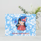 Nossa garotinha está toda vestida em sua banheira patriótica de hula pronta para celebrar o 4 de julho e enviar sua mensagem de Aloha! Este querido gráfico dança sobre um impressão de pareau havaiano antigo. Hele mei hoohiwahiwa! (Venha comemorar!) Personalize esta saudação ou use a nossa.