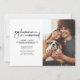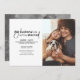 Anúncio/convite de festas horizontal super fofo e moderno, com sua foto vertical de estimação, e a legenda 'Meus Humanos estão se casando' em um roteiro tendencioso com letra de mão (foto de estimação, ou foto de estimação+humana). A parte traseira da placa apresenta uma textura conhecida de cor d'água preto e branco. Facilmente personalizado. Copyright Anastasia Surridge, todos os direitos reservados.