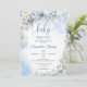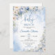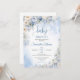 Faça seus convidados felizes com este convite chorão de bebê apresenta flores azuis pastel de cor d'água e hydrangeas misturadas flores brancas de rosas mistas folhas verdes de eucalipto. Faça sua festa de aniversário chique e dê a eles momentos inesquecíveis cheio de amor e alegria. Não hesite em contactar-me para obter itens ou personalizações correspondentes. Rosas de lâmina ©