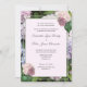 Um cluster de Summer Hydrangea Blossoms definiu o fundo deste elegante Convite de Casamento. Decorado em tons suaves de rosa, verde e lilás, com uma borda verde de verão. O texto inicial inclui os detalhes do convite de casamento de seu cheio com Os Nomes da Noiva e do Cavalo, Data de Casamento, Local e Recepção. O reverso é um verde de verão correspondente. Para personalizar, basta substituir o texto de exemplo usando nosso modelo fácil. Certifique-se de ver a coleção completa de Hydrangeas de Verão, Blossoms, Rosa e Casamentos Verdes para cartas e acessórios correspondentes.