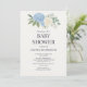 Celebrate the mom-to-be with this hydrangea botanical eucalyptus baby shower invitation. Soft watercolor blue hydrangeas pair with delicate eucalyptus greenery for a fresh, elegant look. A clean, modern layout keeps event details beautifully clear and fully print-ready — perfect for spring or summer baby showers and gender-neutral themes.