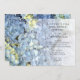 Convide convidados para uma festa pré-casamento honrando a noiva para estar com o elegante Chá de panela Floral de Hydrangea Azul. Este bonito chá de casamento de flores personalizado apresenta uma fotografia floral melhorada digitalmente de uma flor azul de hydrangea. Inpo perfeito para um evento de festa de jardim de verão.