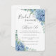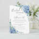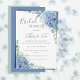 Hipóteses azuis num convite de chá de panela bonito de fundo branco. Um convite perfeito para noivas para qualquer estação. As drangas de água são lindas. Clássico.