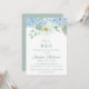 Um convite elegante para o chá de fraldas com hífens azuis, perfeito para um primavera ou chá de fraldas de verão. O clássico design floral apresenta híbridos de aquarela azul-macia, acentuados com flores e folhas verdes.