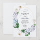 Chá de fraldas de longa distância por convite por correio com verde de cor d'água com hífens azuis e roxas em um quadro de ouro redondo. Alternativo perfeito quando os entes queridos não podem se juntar para um chá. Personalize com suas informações ou clique em "Clique para personalizar mais" para editar estilos de fonte, tamanho e cores.