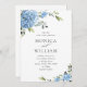 Convites Hydrangea Floral, Azul Elegante, Todos Em Um