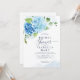 Pintou-se a mão um chá de panela floral de aquarela com flores claras de hydrangea azul-bebê e verde com um roteiro de caligrafia moderno. Você pode personalizar o texto, o estilo da fonte, a cor e o tamanho em frente e atrás do convite. Você é bem-vindo para me contatar para encontrar itens correspondentes.