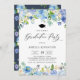 Convide convidados para o seu evento com este convite de formatura personalizável. Apresenta terras florais de cor aquosa de rosas azuis, roxas e brancas, anêmonas e híbridos. Personalize este convite de formatura floral adicionando os detalhes do evento. Este convite para a graduação de hydrangea é perfeito para festas de formatura de primavera e inverno.
