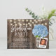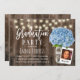 Blue Hydrangea Floral Rustic Wood String Luz Fotografia Festas de formatura Invites.