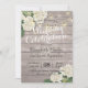 Celebração de Casamento / Modelo de Cartões de Chá de panela - Flores de Hydrangea de Aquarela Branca Elegante e Luzes de Cordas no Fundo da Madeira Rústica. Um Design perfeito para o seu grande dia. Todo estilo de texto, cores, tamanhos podem ser modificados para ajustado das suas necessidades!