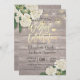 Modelo de Cartões de Convite para Celebração de Casamento - Flores de Aquarela Branca Elegante e Flores de Cordas no Fundo Russo de Madeira. Um Design perfeito para o seu grande dia. Todo estilo de texto, cores, tamanhos podem ser modificados para ajustado das suas necessidades!