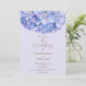 Hydrangea Pearl Invitation De Cor Azul De Água. Adorava hídrangas? Então esta design é perfeita para o seu grande dia. Apresenta uma grande e bela hydrangea azul e lavanda com pequenas pérolas brancas que repousam nas pétalas. Fácil de editar com todas as suas informações de grandes dias.