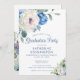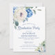Hydrangea Rosa Floral Festa de formatura Elegante Convite: delicadas faixas azuis de cor aquática e rosas brancas e peonias enquadram as bordas desta primavera. Personalize facilmente para alterar o ano, nomes, fontes, etc.Entre em contato conosco em cedarandstring@gmail.com se precisar de assistência com o design ou produtos correspondentes.