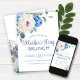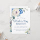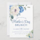 Hydrangea Rosa Floral Dia de as mães Elegante Brunch Convite: delicadas faixas azuis de cor d'água e rosas brancas e peonias enquadram as bordas desta primavera. Personalize facilmente para alterar o ano, nomes, fontes, etc.Entre em contato conosco em cedarandstring@gmail.com se precisar de assistência com o design ou produtos correspondentes.