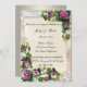 Flores bonito de hidrangea púrpura com aparas de rendas. Surpreenda seus amigos e família com um charmoso convite festa de noivado que combina o estilo clássico com detalhes modernos e frescos quando você envia este elegante convite. Este belo cartão de convite está pronto para ser personalizado. Personalize a placa alterando o texto nos campos fornecidos frente e verso. Você pode alterar o estilo, o tamanho e a cor da fonte, bem como o tipo e o estilo do papel.