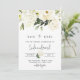 Este elegante WEDDING SAVE THE DATE apresenta florais brancos, hidrangea, ouro e belo verde pintados manualmente.