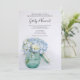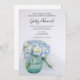 Convide convidados para uma festa pré-casamento honrando a noiva e o noivo para estarem com as bonito Flores de Hydrangea Azul no Janto de Ensaio de Casamento Vase. Este elegante e personalizado janto de flores, convidado, apresenta uma fotografia floral acinzentada de um boião de vidro azul-cólico rústico cheio de hífenes azuis-claros com um véu branco de brasa. Perfeito para dentro do casal que está planejando um evento de festas de jardim de verão.