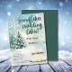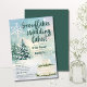 Belo e encantador chá de panela de inverno com uma escrita manual moderna, flocos de neve, bolo de casamento, vergreens e neve em tons de lacre, azul legal e branco. Disponível como download digital ou impresso. Design por LeahG de budgetweddinginvites.com