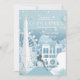 Convide seus amigos e família para comemorar seu grande dia com este elegante convite fotográfico apresentando uma cena de inverno em Paris. O fundo mostra a Torre Eiffel, Notre Dame, e o Arco de Triomphe atrás de uma garota marrom em seu vestido segurando flores. Personalize com todos os detalhes do serviço de massa, recepção e festa de aniversário. A coordenar o convite e os itens de parte disponíveis.