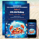 Convite de aniversário para uma piscina, parque aquático, caranguejo, Festa de aniversário de verão de praia com um caranguejo Cute, sob o mar maravilhoso Aniversário para um menino, modelo completamente editável. Personalize facilmente o número da idade do menino e todo o texto. Visite a loja para ver a linha de cheio dos produtos disponíveis. Aproveite sua celebração de verão :) - Kate Eden Art