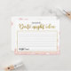Este moderno cartão floral "Date Night Idea" apresenta um fundo floral cor-de-rosa com cinzas de brilho do ouro. O texto é escrito em uma mistura de uma fonte de caligrafia divertida e uma fonte moderna de sans, este cartão de Datas Noturnas é personalizado com o nome do futuro noivo e a data do Chá de panela.