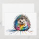Ein freundlicher Igel in bunten Farben, eine kindliche Zeichnung eines Igels, mit Tusche und Kreide, gekleckst und geschmierte ist die Farben als Stil und Effekt des lustigen Bildes.