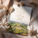Experimente o charme do campo italiano com este belo convite para o casamento, com uma representação aquosa de Il Poggio Alle Trese na Úmbria. A design mostra colinas rolantes, vinhedos exuberantes, e uma vila rústica cercada por árvores de alto nível, capturando a beleza eterno das paisagens serenas da Toscana. Ideal para um casamento de destino, este convite exude elegância e romance, definindo perfeitamente o tom de uma celebração mergulhada na cultura italiana e no esplendor natural.