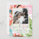A ilha de orquídeas original do PixDezines, salve o cartão de data, com orquídeas cor de laranja, palmas azuis e rosa.Suíte tropical de casamento.