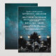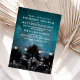 Convites de casamento de destino de praia com uma romântica noite estrelada de céu ombre azul, palmeiras, luzes de corda e um modelo de casamento simples que é fácil de personalizar.
