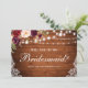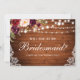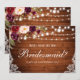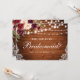 Luzes de Corda de Madeira para Casamento Rústico com Renda e Floral Watercolor Burgundy Marsala Cartão de Dama de Honra