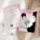 Romântica, moderna e mínima convocação de fotos de casamento com código qr RSVP. Originalmente uma ilustração fofa do nosso designer para qualquer um que queira um toque fofo para o seu cartão de casamento.