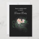 Um convite de festas elegante e janto com ilustração de algumas delicadas flores cor-de-rosa florescendo com girinos verdes e folhas sobre fundo preto. As cinzas luminosas brilhantes centradas em torno das flores acentuam e iluminam sua beleza.