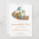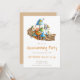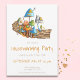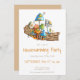 Bom convite para uma festa de inauguração. A ilustração é uma bela ilustração de vilarejo cogumelo com muitas casas e detalhes. Personalize o convite com suas informações. Ilustrada e projetada por Patricia Alvarez.