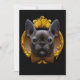 Retrato de ilustração de buldogue francês com imagem decorativa dourada e tigela marrom com bolinhas bege