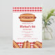 Ilustração de comida rápida do Destei de um pão de cachorro-quente com uma linguiça grelhada que tem alguns ketchup e mostarda em cima. O fundo tem um padrão xadrez vermelho. Personalize o texto com os detalhes do seu evento.