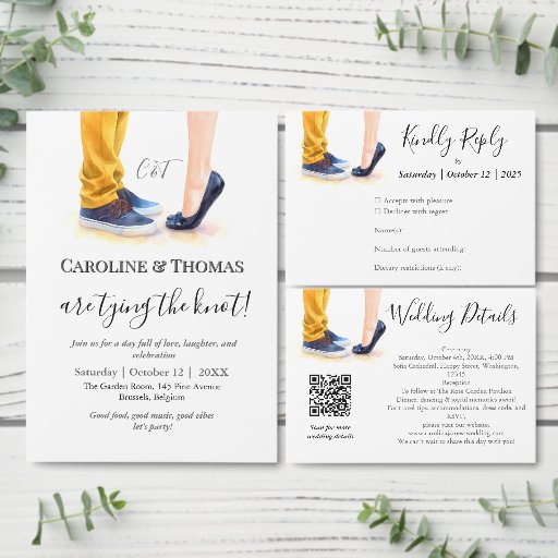 Convites Ilustração de Casal Chic de Castigo de Ensaio Casu