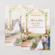 Defina a data e o clima com este Salve o Dia Elegantemente Romântico. O design apresenta uma cena de aquarela deslumbrante de um casal amoroso relaxando sob um magnífico caramanchão floral rosa. O cenário de jardim sonhador e a paleta suave e artística criam uma primeira impressão verdadeiramente inesquecível para o seu casamento de conto de fadas.