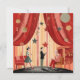Ilustração retrô de Natal com pessoas no teatro em estilo retrô