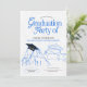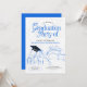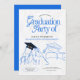 Este design de convite para festa de formatura apresenta um convite para festas de formatura de ilustração azul e preto.