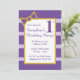 Ilusima Purple Stripes As raparigas convites de aniversário Douradas são excelentes para combinar com a decoração do partido temido para uma festa de aniversário, um chá de fraldas, uma festa do primeiro aniversario, para adicionar um toque especial a um dia especial.