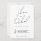 Chamado de fotos de casamento preto e branco para a caligrafia de guião caprichosa. Anuncie seu dia especial com nosso incrível convite de casamento, projetado com um toque de elegância e elegância eterno. Este convite apresenta uma sofisticada estética preto-e-branco, onde os nomes dos casais felizes são lindamente reproduzidos numa caligrafia na moda, criando um toque personalizado e refinado. O reverso deste convite fornece uma vitrine perfeita para as vossas memórias queridas, à medida que foi concebido para mostrar uma fotografia do casal. Este belo convite é a maneira ideal de dar o tom para uma celebração memorável e romântica de casamento.