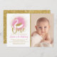Convite para fotografia do primeiro aniversario da Princesa Suína Dourada Elegante rosa