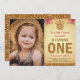 Convite de festas Elegante com uma bela coroa dourada e tipografia vibrante contra um fundo de pergaminho vintage. Basta adicionar os detalhes do seu evento neste modelo fácil de usar e adorar este cartão com a foto favorita do seu filho para torná-lo um convite generoso. Sacudir a placa para revelar uma textura falsa de brilho dourado na parte traseira da placa.