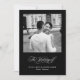 Este elegante convite de casamento preto mostra o estilo clássico do velho mundo com caligrafia romântica branca e sua própria foto pessoal. A parte de trás do cartão contém todos os detalhes do seu casamento, rodeados por uma delicada estrutura branca moderna e um código de QR digitalizável para que seus convidados possam RSVP ou visitar seu site de casamento. Ponha o tom para o seu luxo e sofisticado casamento italiano inspirado nesta design minimalista e elegante.