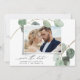 Um casamento elegante de fotos de eucalipto com o guião moderno salva a data.