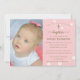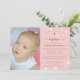 Um convite elegante e moderno ao batismo religioso para uma menina, apresentando um simples padrão floral de margaridas brancas em um fundo rosa e uma cruz minimalista. O ouro escuro do escrevendo eleva a design e a caligrafia floresce tornando-o giro e doce.