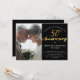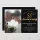 Esta é uma convite de festas simples e elegante para convidar seus convidados para comemorar seu ouro 50º aniversário de casamento em estilo. É um design de guião moderno e na moda, manuscrito em ouro, com uma fotografia e um texto simples em branco sobre um fundo preto clássico e chico. Entre em contato com o designer para obter informações sobre este design.
